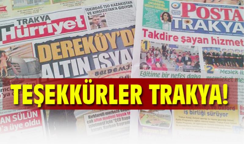 Bu başarımız beraberinde, hizmet yelpazemizi geliştirme talebini getirdi. Bu çerçevede, geçtiğimiz günlerde yine Türkiye’nin en çok okunan ve en etkin gazetesi Hürriyet ile anlaşma sağladık. Hürriyet Trakya eki 28 Kasım Perşembe günü Trakya okuyucusuyla buluştu.”