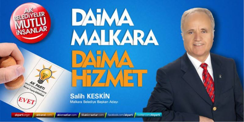 Tapu ve Kadastro Müdürlüğü’nden emekli bir memur olan Salih Keskin, devletin içinden gelen bir aday olarak devlet geleneğini de iyi bilmesiyle öne çıkıyor. Bürokrasiye olan hâkimiyetine 2 dönem (1999-2009) Malkara Belediye Başkanlığı tecrübesi de eklenince, Keskin en göze çarpan başkan adayı olarak takdir topluyor. Malkara’da ustalık dönemini yaşamak ve hizmet etmek istediği için aday olduğunu her fırsatta dile getiren Salih Keskin, Malkaralılar tarafından ilgiyle takip ediliyor. 10 yıllık başkanlığı döneminde yaptığı yatırım ve hizmetlerle Malkaralılar’ın gönlünde taht kuran Keskin, hizmete kaldığı yerden devam etmek için çalıştıklarını ifade etti.