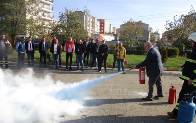 Çorlu Belediyesi personeline Tekirdağ Büyükşehir Belediyesi İtfaiye Dairesi Başkanlığı bünyesindeki itfaiye ekipleri tarafından yangın söndürme eğitimi verildi.