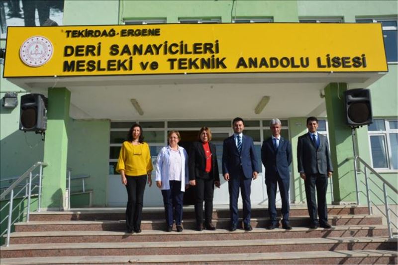Ergene Deri Sanayicileri Mesleki ve Teknik Anadolu Lisesi Müdürü Ayla Daylan, müdür yardımcıları Refik Yalçın ve Serkan Akdağ ile görüşerek okulda yer alan bölümler, çalışma alanları ve yapılan eğitim çalışmaları ile ilgili olarak bilgiler alan Çorlu TSO Yönetim Kurulu Başkanı İzzet Volkan Çorlu TSO olarak mesleki eğitimin geliştirilmesi ve bölgenin ihtiyacı olan ara elaman konusunun çözümü için her türlü işbirliğine hazır olduklarını kaydetti.