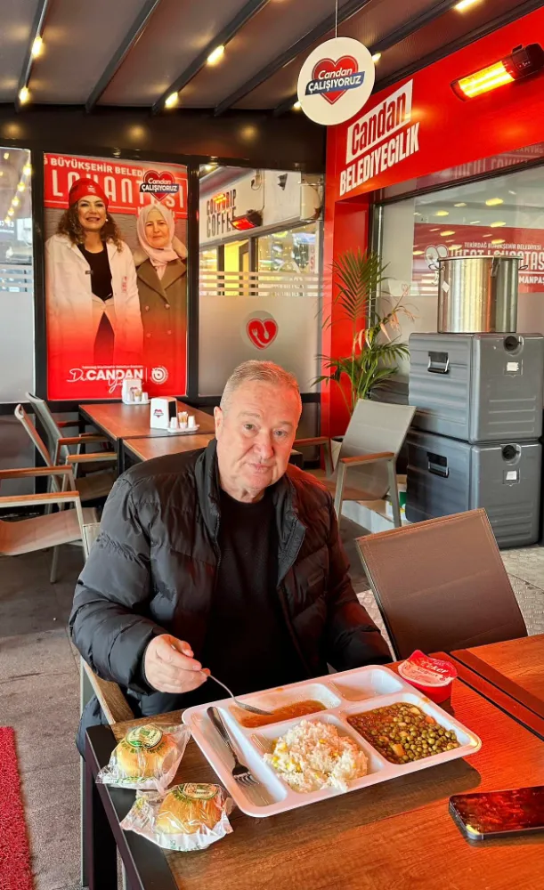 Çorba, Bezelye yemeği, bulgur pilavı ve yoğurttan oluşan 4 çeşit menüyü beğenen gazeteci Işıksal, yaşlı ve dar gelirli vatandaşlara da ikram etti.