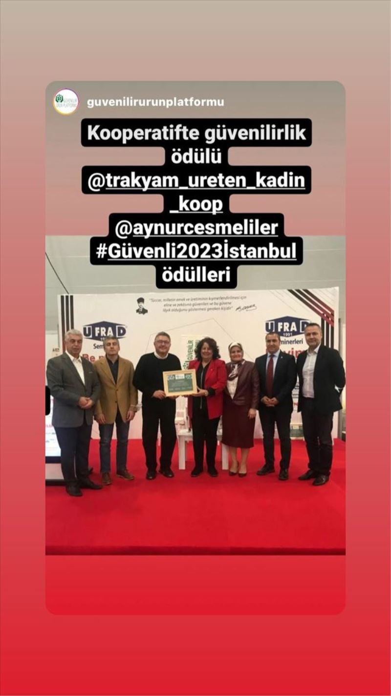 Bu açıklama sonrasında güvenirlik konusunda etkinliğe davet edilen Tobb Tekirdağ Kadın Girişimciler İcra Komitesi Başkanı Aynur Çeşmeliler´e ve ödül alan diğer misafirlere Bayim Olur musun fuarı kapsamında “Hayat Güvenilir Olsa” anlayışına destek vermeleri nedeniyle ödülleri takdim edildi.