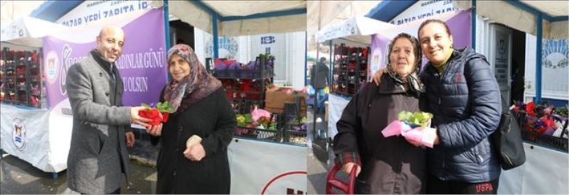 Marmaraereğlisi Belediyesi, 8 Mart Dünya Kadınlar Günü etkinlikleri kapsamında kadınlara çiçek dağıtımı yaptı.