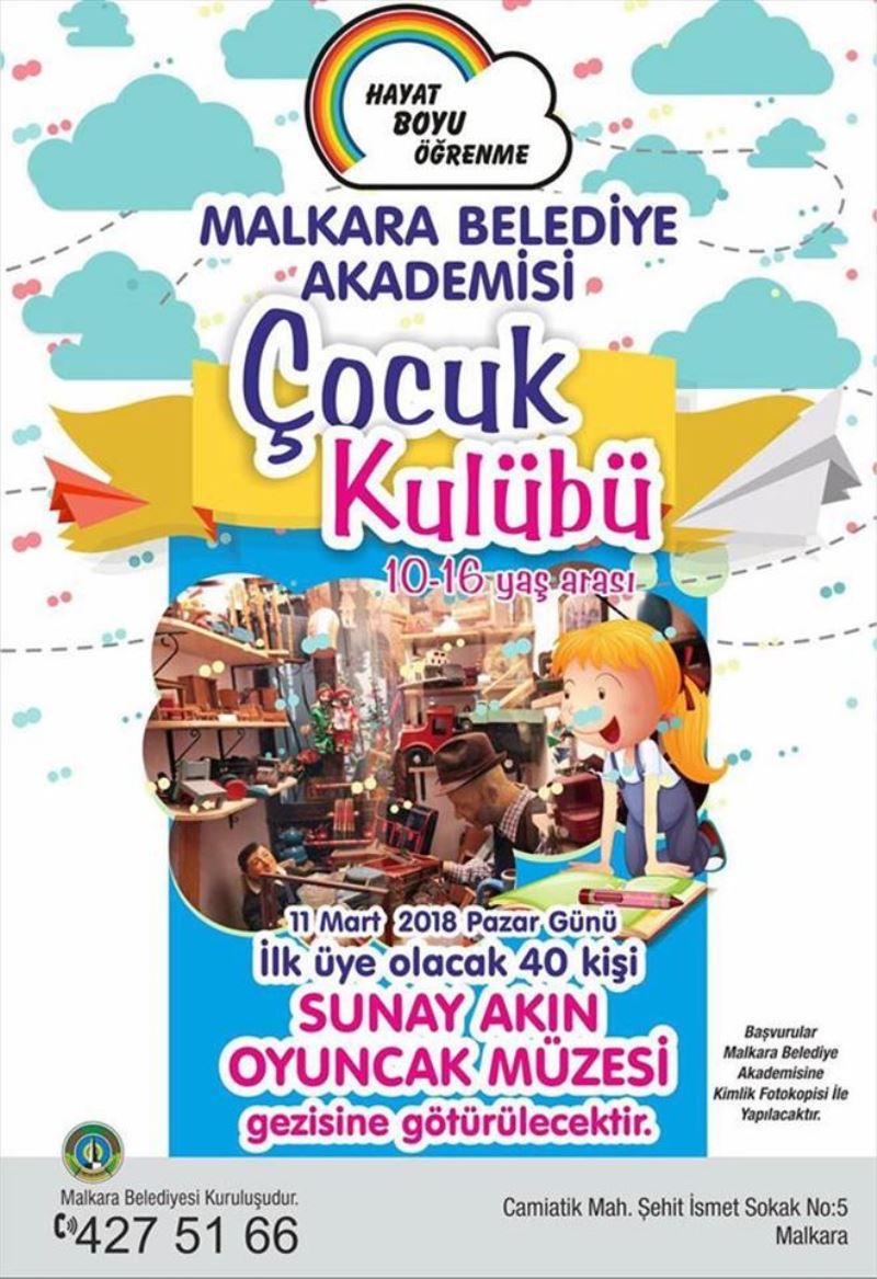 Malkara Belediyesi bünyesinde ´hayat boyu öğrenme´ sloganıyla kurulan Malkara Belediye Akademisi Çocuk Kulübüne üye olacak ilk 40 kişi 11 Mart 2018 Pazar günü düzenlenecek olan gezi ile Sunay Akın oyuncak müzesini gezme ve görme şansına sahip olacak.