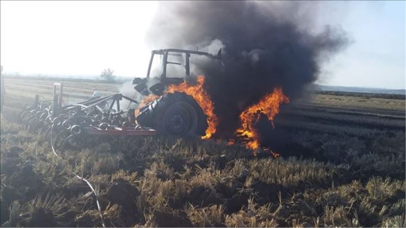 Tekirdağ´ın Hayrabolu ilçesinde tarla süren çiftçinin traktörü alev alev yandı.