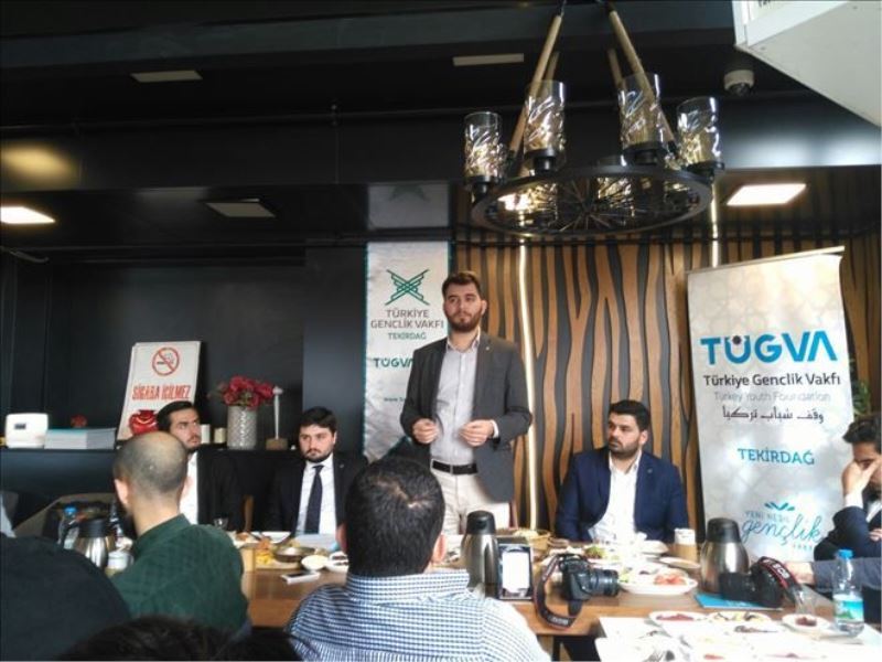 Tekirdağ´ın Süleymanpaşa İlçesinde özel bir işletmede gerçekleşen basın toplantısında konuşan Tügva Tekirdağ İl Temsilcisi Emrah Hekim “Türkiye Gençlik Vakfı dünya üzerinde iyi ve güzele dair ne varsa savunan her daim hakkın ve adaletin tarafında olacak bir nesil yetiştirme amacıyla kurulmuş, yeni nesil bir gençlik vakfıdır. Biz Tügva olarak gençliğimizin başıboş geçeceğine bize dayatılan yaklaşımına rağmen inanmışlık ve azim içerisinde genç tanımını değiştirmek adına yola çıktık. Misyonumuz gençliğin sosyal, zihinsel, manevi, ruhsal ve zihinsel gelişimlerini gözeterek, kendini devamlı geliştiren kültürel iletişime önem veren yenilikçi ve nitelikli insan kıymetinin oluşumuna katkı sağlamaktır. Vizyonumuz medeniyetimizi yeniden ihya ve inşa edecek nesillerin yeniden yetiştiren bir vakıf olmaktır.´´ dedi.