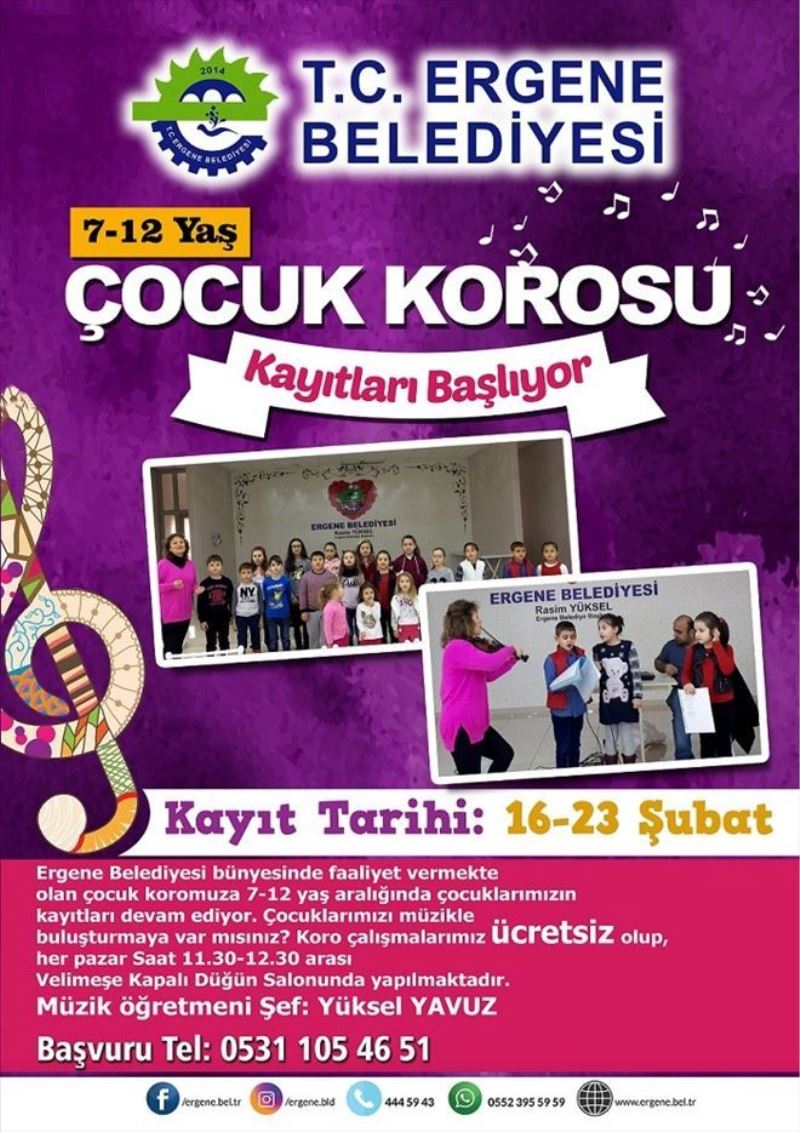 Son olarak Çocuk Korosu ve Halk Oyunu Topluluğu ile kurs kayıtlarının startını veren Ergene Belediye Başkanlığından yapılan açıklamaya göre Çocuk Korosu kayıtları kapsamında Müzik Öğretmeni Yüksel Yavuz Şefliğinde 7-12 yaş aralığında çocukları müzikle kavuşturmak adına ücretsiz olarak her Pazar Saat 11:30-12:30 arasında Velimeşe Kapalı Düğün Salonunda çalışmaların gerçekleştirileceği açıklandı. Bunun yanı sıra Halk Oyunları Topluluğu kursu kapsamında Antrenör Yasemin Özyılmaz ve Yasin Taşcı yönetiminde 13-17 yaş aralığında gençlerin her Salı ve Perşembe günleri Marmaracık Kapalı Düğün Salonunda 19:00-20:00 saatleri arasında gerçekleştirilen Halk Oyunları Topluluğuna katılabileceğinin bilgisi kaydedildi.