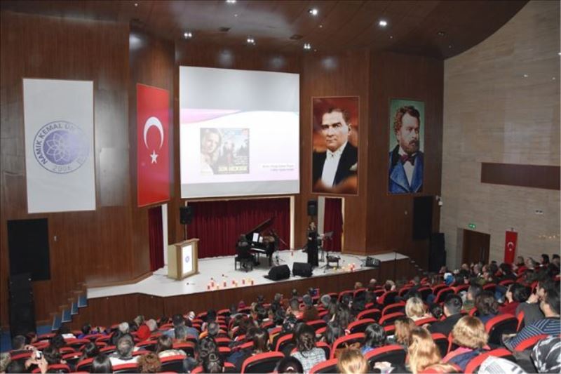 Namık Kemal Üniversitesi Rektörlük Konferans Salonu´nda gerçekleşen konseri Rektör Yardımcısı Prof. Dr. İsmail Yılmaz, NKÜ Türk Müziği Devlet Konservatuvarı Müdürü Yrd. Doç. Dr. Arda Göksu, Üniversitemiz Kadın Sorunları Uygulama ve Araştırma Merkezi (NAKSAM) Müdürü Doç. Dr. Gülen Özdemir, AK Parti Tekirdağ İl Başkan Vekili Mestan Özcan, Namık Kemal Üniversitesi akademik ve idari personeli, öğrenciler ve Tekirdağlı sanatseverler izledi.